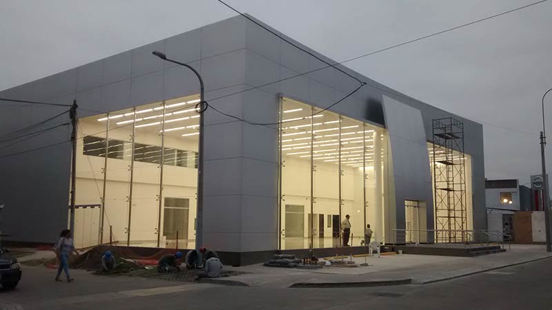 El Proyecto Construcción De Showroom Y Centro De Servicios de Nuevo Concesionario (Ford) Maquinarias San Miguel comprende la Gestión para expediente técnico de Obra, licitaciones y desarrollo de implementación de especialidades correspondientes a estructuras, arquitectura, Instalaciones del sistema eléctrico en baja y media tensión, sistema de aire acondicionado y ventilación mecánica, sistema de agua contra incendios, sistema de detección y alarma de incendios, implementación de losa monolítica, obras húmedas, terminaciones e instalaciones sanitarias, Instalaciones del sistema eléctrico en baja tensión, obras húmedas, terminaciones e instalaciones sanitarias.