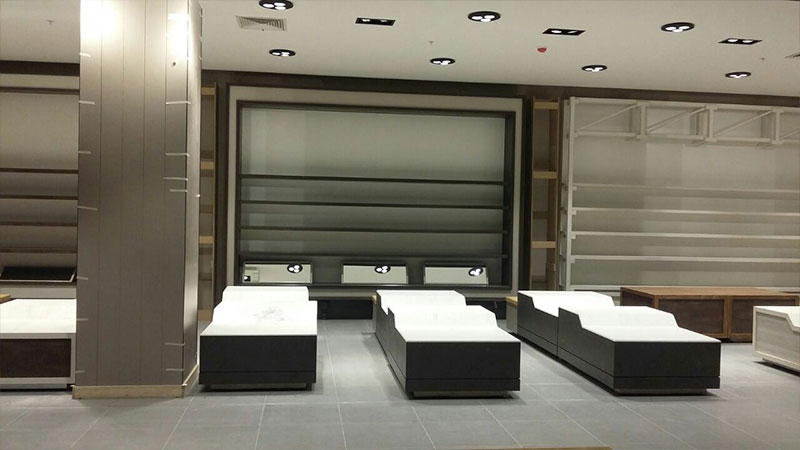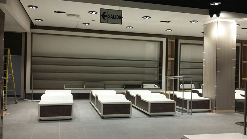 La implementación comprende los sistemas de media tensión, baja tensión, corrientes débiles, aire acondicionado y ventilación mecánica, protección contra incendio, extinción de incendio, instalaciones sanitarias, control centralizado de equipos de clima, iluminación y el sistema eléctrico. Asimismo, involucra la implementación de contra piso y colocación de mayólicas en piso, terminaciones, tabiquería y estructuras metálicas para sala de ventas y oficinas administrativas. Implementación de la Tienda con Luminarias Led. Mobiliario de Oficinas Administrativas. Implementación de letreros corporativos. Instalación de montacargas y escaleras mecánicas para los 3 niveles.