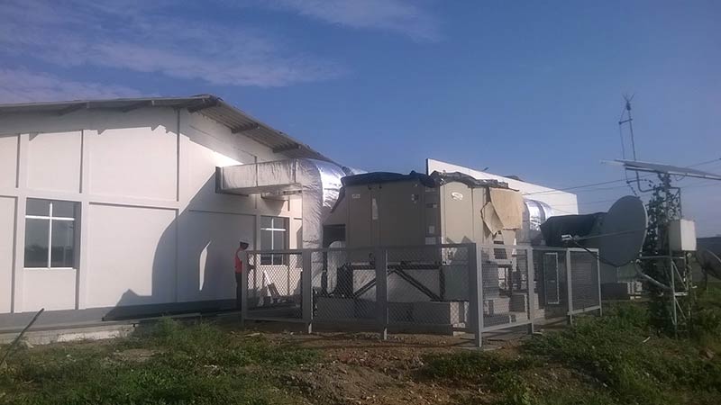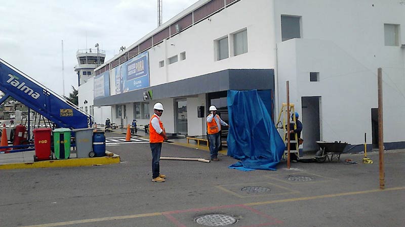 Se realizaron trabajos de ductería MPU para el sistema de aire acondicionado de la sala de terminales de pasajeros, se instalaron equipos roof Top que distribuyen aire acondicionado a este sistema de ductos. Se realizó la construcción de la caseta del Grupo Electrógeno y las bases para Roof Top, se hicieron las instalaciones eléctricas en Baja Tensión para alimentar a los equipos Roof Top, al grupo electrógeno y a equipos menores de Aire Acondicionado, se habilitaron tableros eléctricos.